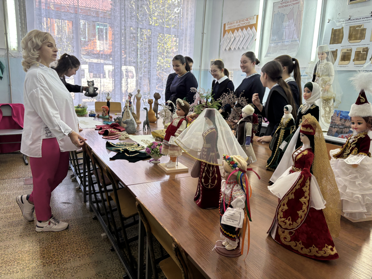 В рамках акции «Университетские субботы в СПО» обучающиеся 8-х классов (Тибилова Б.С.) побывали в лицее №4 г. Владикавказ. С первых минут пребывания в лицее наши ребята были увлечены выставкой работ студентов лицея. С большим интересом они познакомились с вышиванием, попробовали смастерить куклу.
